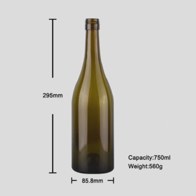 - Şarap üzerindeki ultraviyole ışınlarının oksidatif etkilerini etkili bir şekilde engelleyen vintage yeşil camlı klasik Burgonya şişe şekli