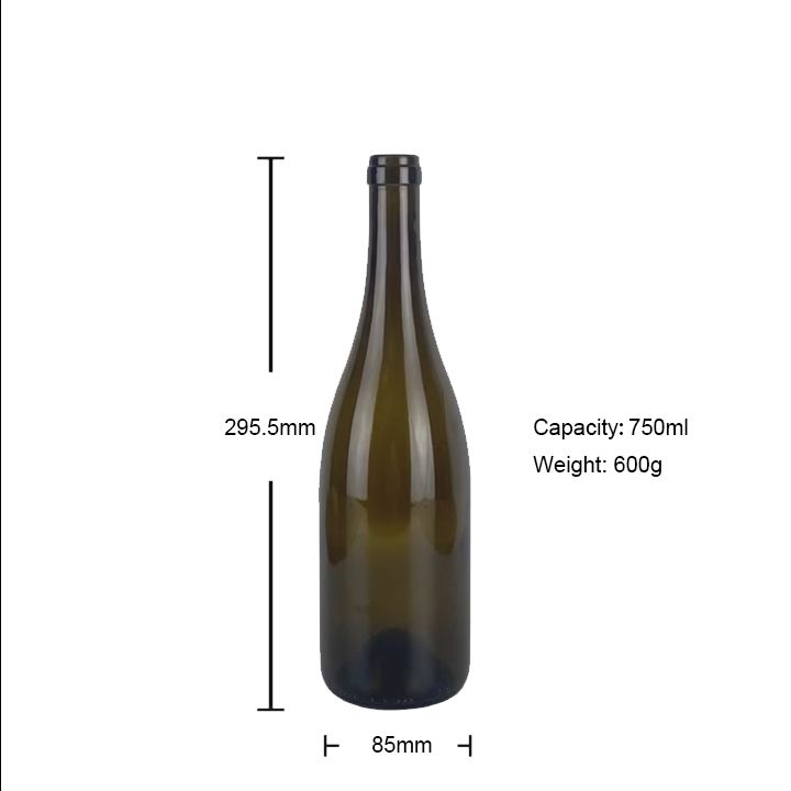 • UV korumalı camlı klasik Burgonya şişesi, ışık geçirgenliği ≤38%, şarabın fotooksidasyonunu etkili bir şekilde geciktirir